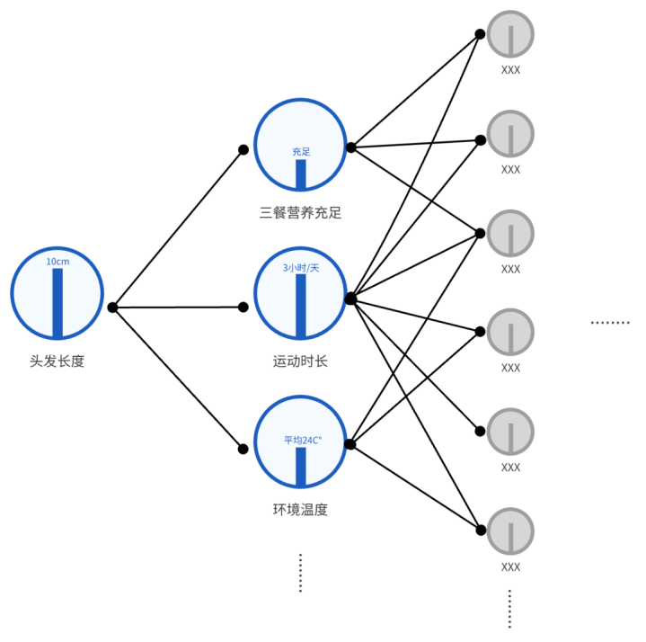 就好比一个人的头发长度变化,不是[头发长度]自发的变化,而是有外界因素影响的。于是这就形成了[单元网络]。