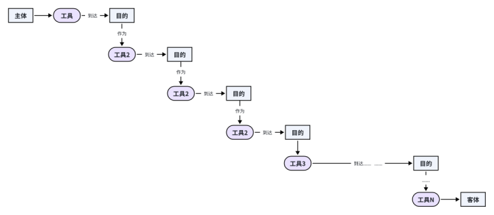 但是:[工具]与[目的]作为一种基础[单元],在研究复杂问题时候,会涉及到不同的维度,维度越多,问题越复杂。那么[工具]与[目的]在不同维度上,是一直在相互迭代转化的。